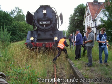 Am 22. Juni 2007 unternahm der Verein nach langer Zeit einmal wieder eine betriebsinterne Probefahrt nach Arendsee. Nachdem die Strecke schon länger nicht mehr befahren worden ist, hatten sich einige Vereinsmitglieder und Helfer bereits Wochen zuvor daran gemacht, die Strecke von größerem Bewuchs zu befreien. Leider war die Aktion nur bedingt von Erfolg gekrönt, denn das danach einsetzende Treibhauswetter ließ die Vegetation erneut sprießen. Dennoch hatte die Deutsche Regionaleisenbahn, derzeitiger Betreiber der Infrastruktur, der Probefahrt zugestimmt. Der Verein hofft, demnächst wieder fallweise das reizvolle Ziel in der Altmark anfahren zu können. Sehen Sie selbst einige Szenen, die Klaus-Dieter Tröger gedreht hat: ... zum Video