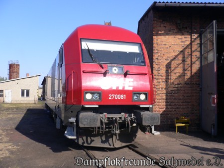 Anlässlich der Hansetage war am 08.06.2008 war die Diesellok OHE 270081 im Lokschuppen zu Gast. Die nachfolgenden Bilder zeigen die Lok auf der Drehscheibe und einige Aufnahmen des Innenlebens.
