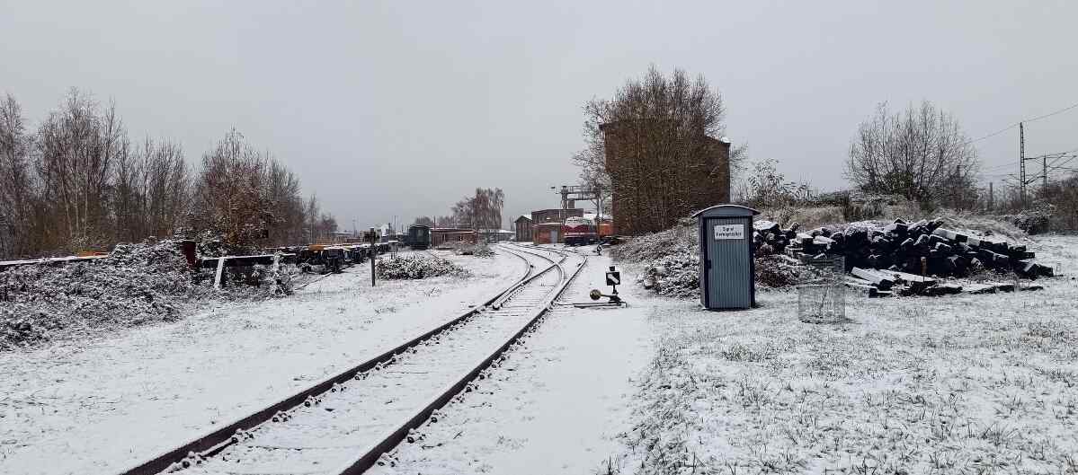 Nach dem Mittagessen war zum Glück der Schnee geschmolzen und es gab noch einige größere Rangieraufgaben zu bewältigen. So wurde die 50 3700 vorübergehend als Blickfang hinter dem Lokschuppen platziert und grüßt nun alle vorbeifahrenden Bahnreisenden. 50 3685, die während der letzten Monate draußen verbracht hatte, durfte dafür wieder in den Lokschuppen