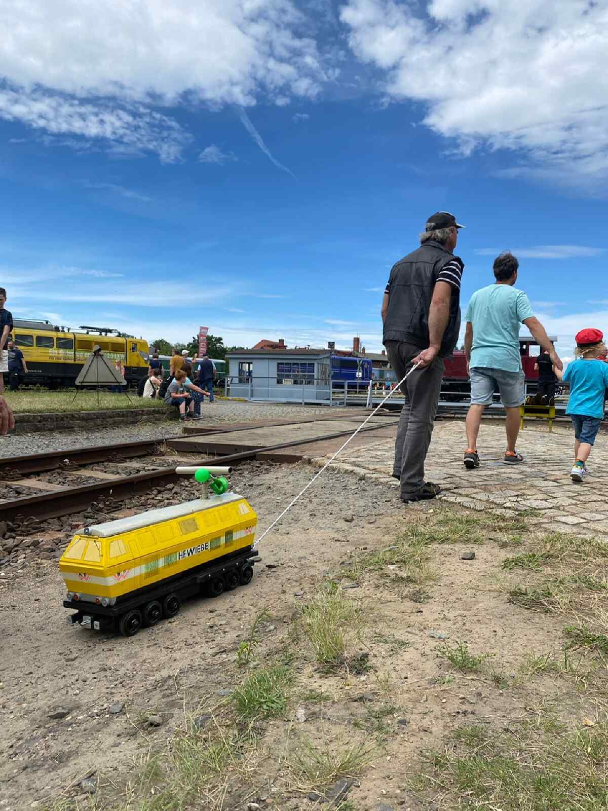 Auch die Draisinenfahrten wurden gut angenommen. Dabei hatten die Besucher die Wahl zwischen der gelben Motordraisine mit Trabant-Technik oder der Handhebeldraisine.