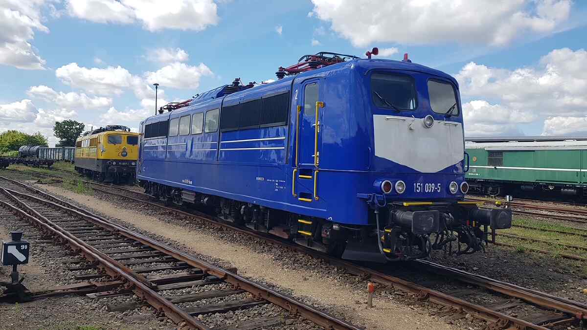 Vielen Dank sagen wir auch noch der Eisenbahngesellschaft Potsdam, die uns kurzfristig zwei Elektroloks der Baureihe 151 als Ausstellungsstücke zur Verfügung stellten.