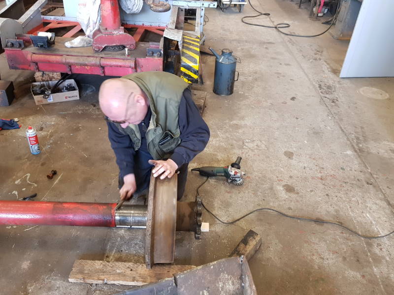 Leider brannte das Museum Mitte der 1990er Jahre nach einer Brandstiftung bis auf die Grundmauern ab, was auch den Rangiertraktor in Mitleidenschaft zog. Da es dort keine Zukunft mehr für ihn gab, übergab uns sein Eigentümer das Fahrzeug als Dauerleihgabe im Jahr 2002. Wir haben uns vor einiger Zeit dazu entschlossen, das Fahrzeug wieder betriebsfähig aufzuarbeiten und damit an den Werksgüterverkehr zu erinnern, den es auch in Wittenberge in größerem Umfang gab (z.B. Nähmaschinenwerk, Ölmühle, Gasanstalt). Was bedeutete es, das Fahrzeug „aufzuarbeiten“? Wir hatten zunächst das Dach und den Führerstand abgenommen. Nach Begutachtung des Innenlebens entschieden wir uns dazu, den Motor, Anlasser, Lichtmaschine, das Getriebe, die Kupplung, Antriebswelle, die Bremsanlage und die Achsen und Antriebsketten auszubauen. Die Teile wurden ihrerseits komplett zerlegt, gereinigt und teilweise unter Verwendung neuer oder neu angefertigter Teile wieder zusammengesetzt.