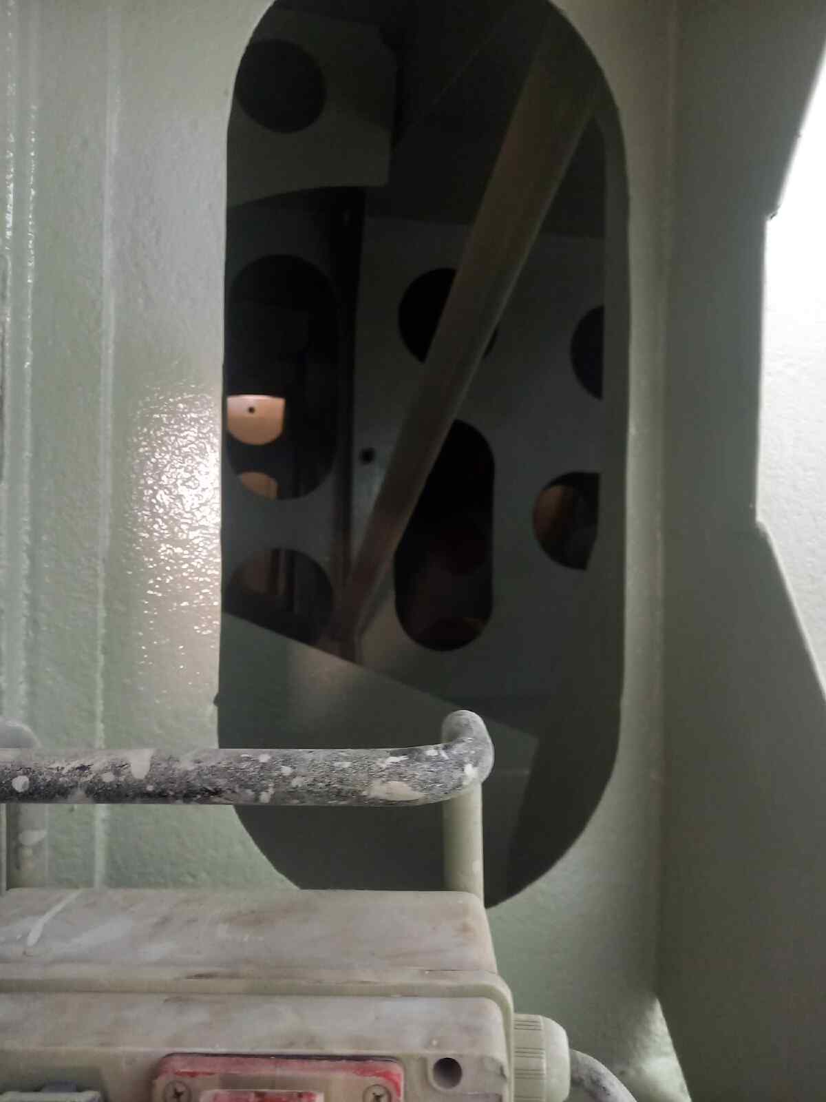 Im Folgenden zeigen wir ein Bild aus dem Tenderinneren. Hier erkennt man, dass der Tender Zwischenwände aufweist, die mit einigen mehr oder weniger großen Öffnungen versehen sind. Diese Wände sollen verhindern, dass das Wasser im Inneren zu stark schwappt, wenn die Lok beschleunigt oder bremst.