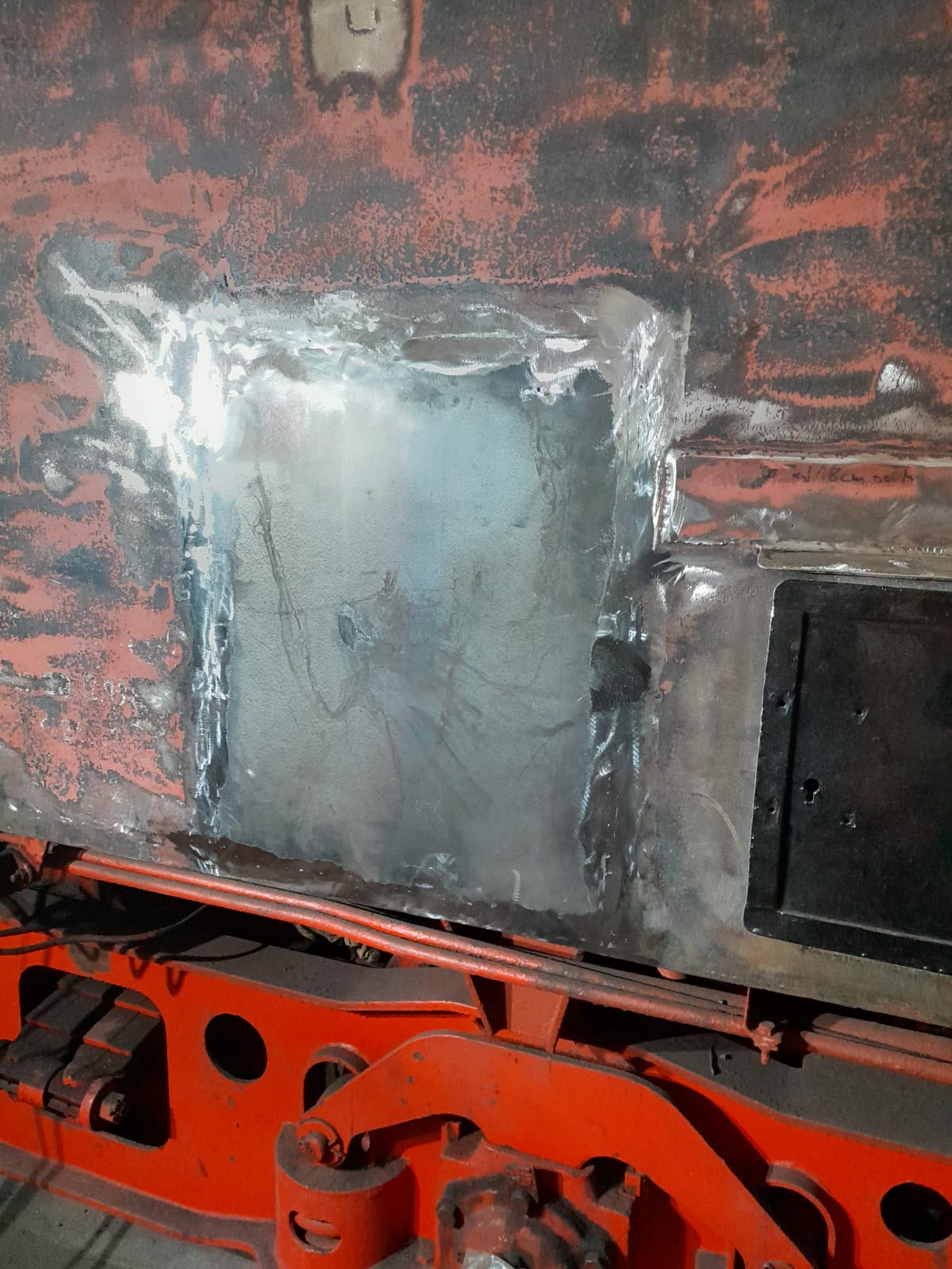 An den letzten beiden Wochenenden haben wir wieder ein großes Programm absolviert. Beginnen wir unsere Übersicht mit den Arbeiten an unserer Dampflok 50 3570. Hier konnte nach langer Zeit die Aufarbeitung des Tenders beendet werden. Die letzte Öffnung in der Außenwand des Wasserkastens wurde zugeschweißt und die Stelle von Innen mit Schutzfarbe überzogen. Nun fehlt noch die äußere Lackierung, die wir wahrscheinlich im kommenden Frühjahr durchführen werden. Inzwischen ist es nämlich schon zu kalt, um Lackfarbe zu verarbeiten.