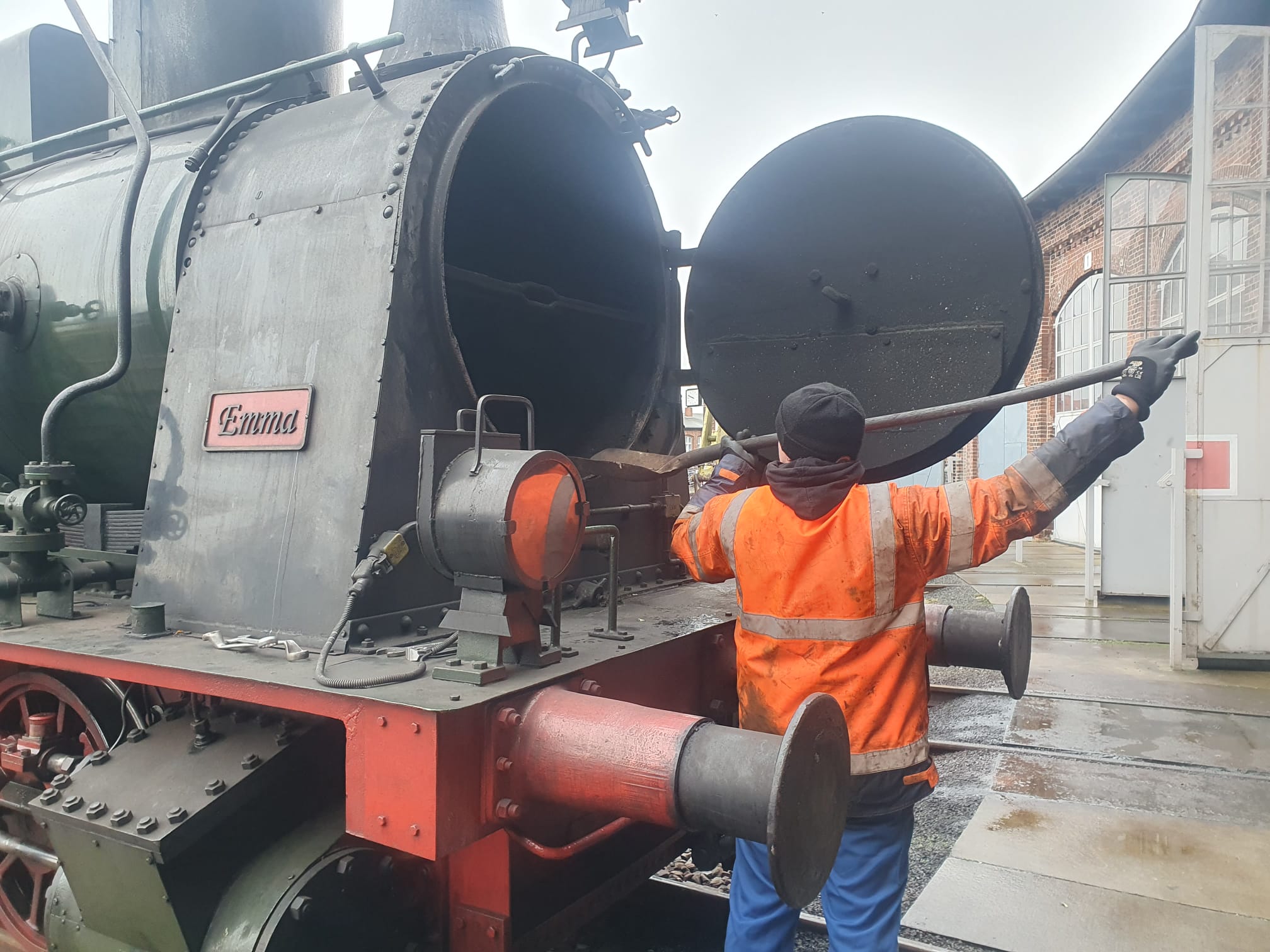 Unsere Dampflok Emma braucht auch Pflege. Hier wurden die Feuerbüchse, Aschkasten, Rauchkammer und Kesselrohre gründliche gereinigt.