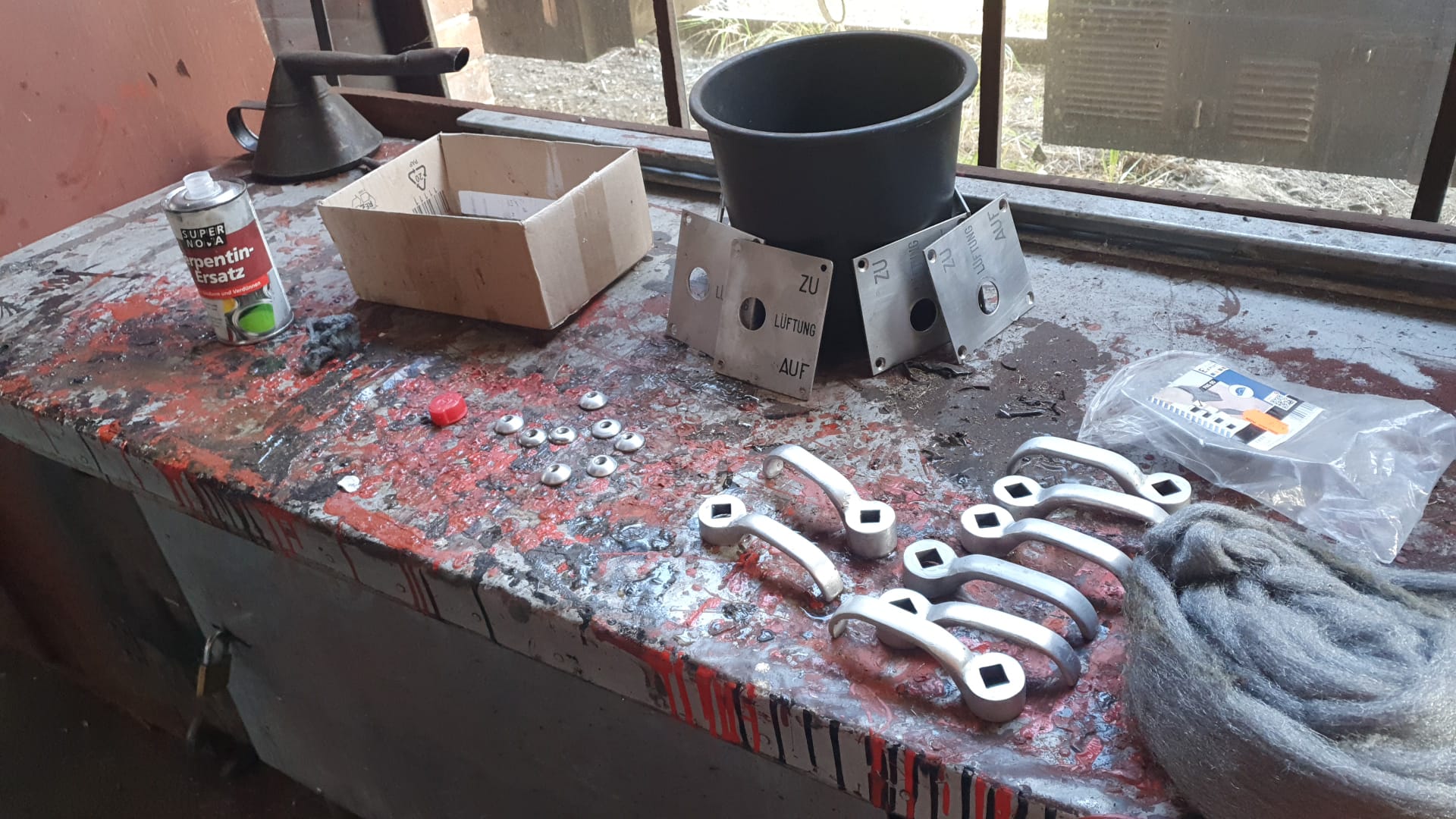 Als nächstes werden die Handgriffe eingebaut, die zum Öffnen und Schließen der Belüftung dienen. Sie wurden bereits gereinigt.