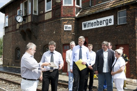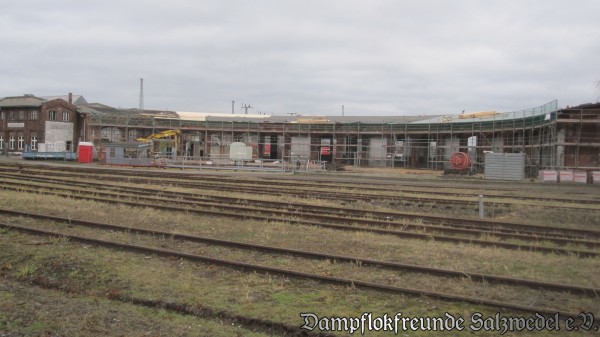 In den vergangenen Wochen wurde die Arbeiten in Wittenberge so gut wie abgeschlossen. Zuletzt wurde noch die Schuppentore instand gesetzt und deren elektrische Steuerung komplett erneuert. Die Strahlengleise in den Lokschuppen sowie die Zufahrts- und einige Abstellgleise wurden komplett erneuert. Jetzt erstrahlt der Lokschuppen und die wichtigsten Nebengebäude in neuem Glanz.