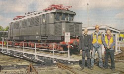 Die Aktiven im Lokschuppen Wittenberge freuen sich über ihre erste historische Elektrolokomotive. Seit dem 18.9.2015 ist die