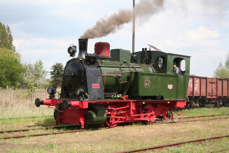 ... absolvierte unsere Dampflok "Emma" erstmalig Fahrten aus eigener Kraft auf dem Gelände des Bahnbetriebswerkes Salzwedel. Sehr zu unserer Freude ist die Restaurierung der Maschine, die 1925 im Hause Hanomag gebaut wurde, nach 42-jähriger Abstellzeit wieder in Betrieb genommen werden. Die Lok stammt von der ehemaligen Zuckerfabrik in Rethen und war dort als Nr. 2 bezeichnet. Sie wurde dort bis 1968 eingesetzt und dann privat erworben. Sie stand dann halbwegs wettergeschützt auf dem Gelände des Eigentümers in der Nähe von Neumünster abgestellt, wurde dort von dem jetzigen Eigentümer, einem bekannten Gleisbauunternehmer Hermann Wiebe erworben und einer gründlichen 18-monatigen Restaurierung unterzogen, die die vollständige Aufarbeitung des Fahrwerks, des Kessels, des Wasserkasten und der Kohlekästen umfasste. Auch wurden neue Strahlpumpen aufgebaut. Der interessierten Öffentlichkeit wird die Lok beim kommenden Tag der offenen Tür am 26./27.6.2010 vorgestellt.