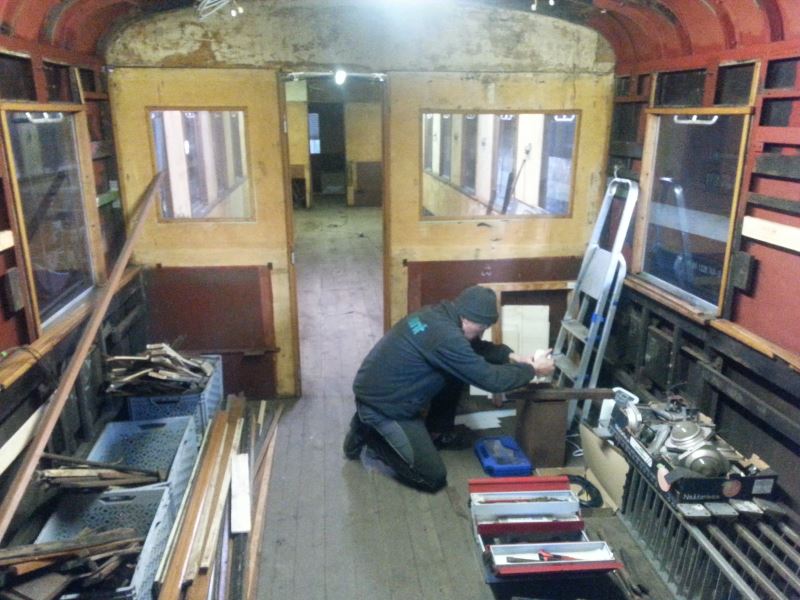Zunächst einige Worte zur Aufarbeitung des Beiwagen VB 197 805: Bereits vor einiger Zeit sind die Fahrgasträume völlig entkernt worden.