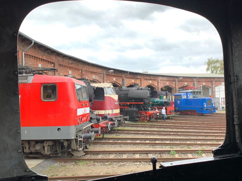 Diesellok 112 364 der Lok OST neben der größten und kleinsten Dampflok des Vereins