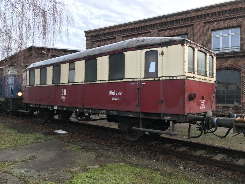 Das Museum Historischer Lokschuppen Wittenberge ist um eine Attraktion reicher. In der Nacht zum 17.12.2019 erreichte der Beiwagen 190 851-6 seinen neuen Standort in Wittenberge. Er blickt auf eine bewegte Geschichte zurück: Das Fahrzeug wurde 1927 bei der Firma Wegmann als 2-achsiger Dieseltriebwagen „VT 804“ gebaut. Die damalige Deutsche Reichsbahn Gesellschaft hatte insgesamt vier Stück dieses Typs erworben, um damit einen wirtschaftlicheren Betrieb auf Nebenbahnen zu testen. Zwei Stück davon verblieben nach dem Krieg in der sowjetischen Besatzungszone. 1951 wurde der Motor unseres Fahrzeugs entfernt und die Deutsche Reichsbahn der DDR setzte ihn fortan als Beiwagen unter der Nummer VB 140 602 ein, unter anderem auf der Strecke Rövershagen – Graal-Müritz. 1960 bis 1975 kam er auf der Prignitzer Kreisringbahn zum Einsatz, bis diese stillgelegt wurde. 1977 übernahm die Rbd Berlin den Wagen und diente dort fortan als Personal- und Bauzugwagen. 1988 übergab man ihn an das Deutsche Technikmuseum Berlin, wo er im Depot für Kommunaltechnik an der Monumentenstraße abgestellt wurde. Dort war er ab und zu für die Öffentlichkeit zugänglich, zuletzt im September 2019. Da die Abstellmöglichkeiten in der Monumentenhalle inzwischen ausgeschöpft sind und sich gerade ein Kontakt zwischen unseren beiden Museen entwickelte, ergab sich die Möglichkeit eines Transfers. Da offenbar auch das Konzept des Historischen Lokschuppens Wittenberge die Verantwortlichen des Technikmuseums überzeugte, wurde eine Übergabe vereinbart. Damit ist es gelungen, das vermutlich letzte existierende Fahrzeug der Perleberger Kreisringbahn und damit ein wertvolles Stück Prignitzer Eisenbahngeschichte in die Region zurückzuholen. Wir danken dem Technikmuseum sehr herzlich dafür! Danken möchten wir auch den Spezialisten der Eisenbahngesellschaft Potsdam, die uns den Wagen am 16./17.12.2019 von Berlin nach Wittenberge überführten. Die Aktiven des Historischen Lokschuppens Wittenberge werden den Wagen nun genauer untersuchen und ein Aufarbeitungskonzept erstellen. Wer uns dabei unterstützen möchte, finanziell oder tatkräftig, ist herzlich willkommen. Vielleicht gibt es auch noch jemanden, der Unterlagen über das Fahrzeug besitzt. Über Kopien oder Originale freuen wir uns sehr.