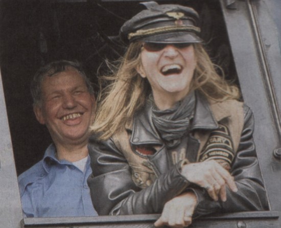 Harley-Davidson-Fan trifft Dampflokführer: Catrin Timmermann aus Hamburg lässt sich von Dieter Heilmann die Lok erklären.