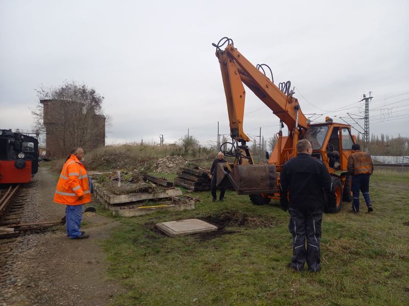Auch das Außenteam war aktiv. Heute wurde das Fundament unserer neuen Fernsprechbude im Gelände gesetzt. Über den Erwerb der Bude hatten wir neulich berichtet.