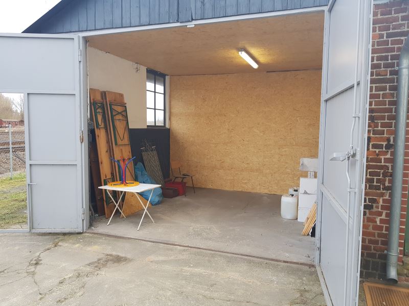 Auch in unserem Lokschuppenanbau ging es weiter, der als Lager genutzt wird. Hier wurde zunächst die Decke gedämmt, um zukünftig die bisher extremen Temperaturschwankungen zwischen Winter und Sommer in dem Raum abzumindern. Danach wurde eine Trennwand eingebaut, um den großen Raum zu teilen.
