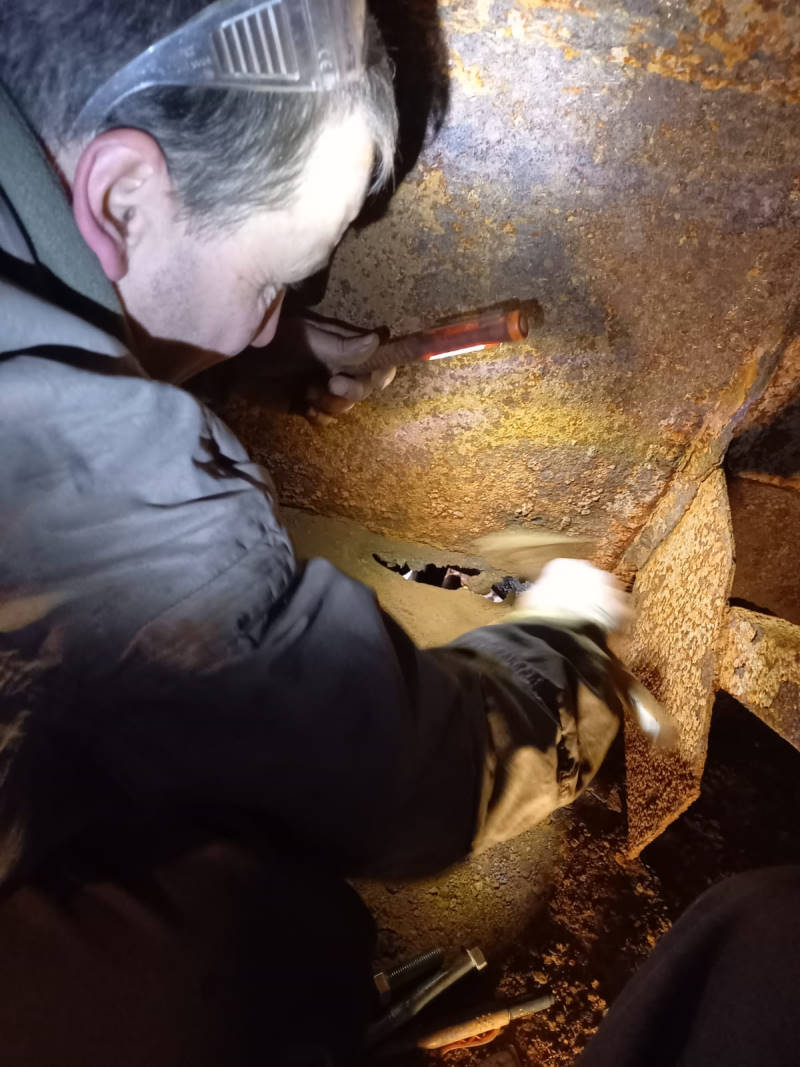 Und als die Kollegen schon in dem Bereich arbeiteten, wurden – wie konnte es anders sein – weiterer Rostfraß festgestellt. Die entsprechenden Stellen in der Tenderwand wurden gleich herausgetrennt und durch neue Bleche ersetzt.