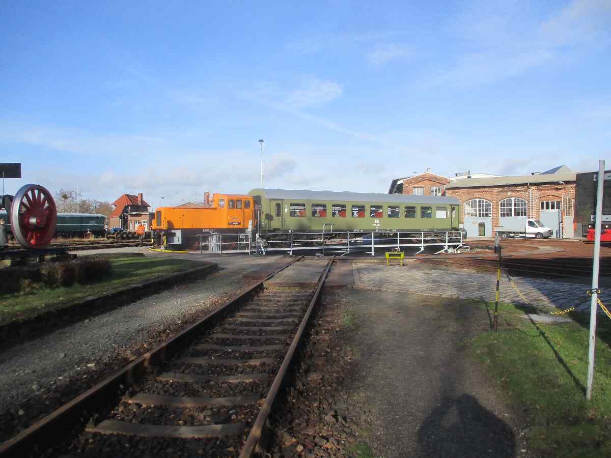 Und dann gab es auch noch eine Rangieraufgabe. So musste ein Wagen, der bislang in unserer Werkstatthalle gestanden hatte, mit einem unserer Schlafwagen tauschen, der dringend eine Reparatur am Wagenkasten benötigte. Hier war – typisch für diese Art von Wagen – das Blech über einer Eingangstür durchgerostet und das Wasser hatte sich schon seinen Weg bis zum Fußboden gebahnt. Hier müssen neue Bleche eingeschweißt werden.