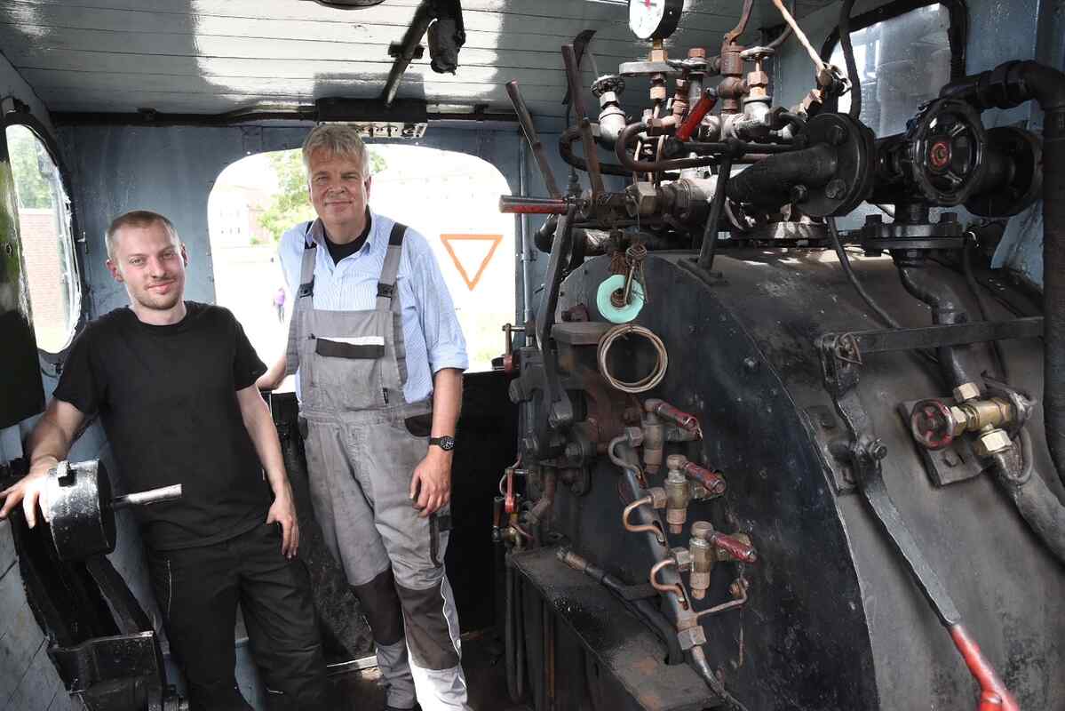 Ganz ohne Dampf sollte es dann aber doch nicht sein. So boten wir Führerstandsmitfahrten auf unserer Dampflok Emma an. Auch die anderen Dampflokomotiven wurden von unseren Besuchern besichtigt und es konnte so manche Frage beantwortet werden.