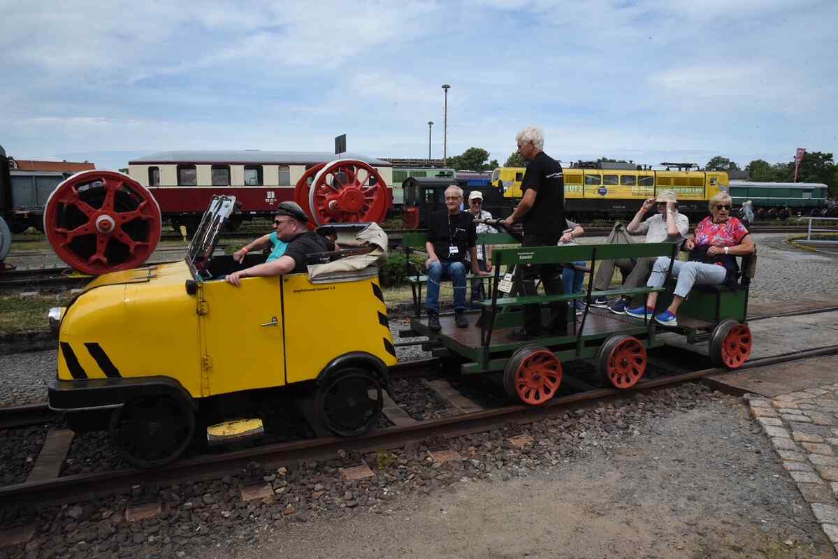 Auch die Draisinenfahrten wurden gut angenommen. Dabei hatten die Besucher die Wahl zwischen der gelben Motordraisine mit Trabant-Technik oder der Handhebeldraisine.