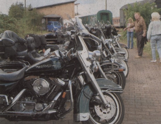 Die Harley-Davidson-Fahrer bereicherten das Lokschuppenfest mit ihren auf Hochglanz polierten Maschinen. 75 Fahrer und Beifahrer waren mit 55 Motorrädern aus allen Himmelsrichtungen auf Einladung der Dampflokfreunde nach Salzwedel gekommen. Sie stellten die Maschinen nicht nur aus, sondern begaben sich auch zwischendurch auf Konvoi-Fahrt durch Salzwedel. Und noch ein Fahrzeug gab es zu bestaunen: Den 34 Jahre alten Ford 71er LTD Brougham von Dirk Jehne aus Wendischbrome.